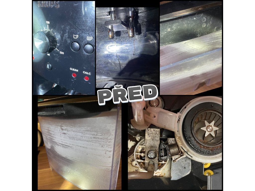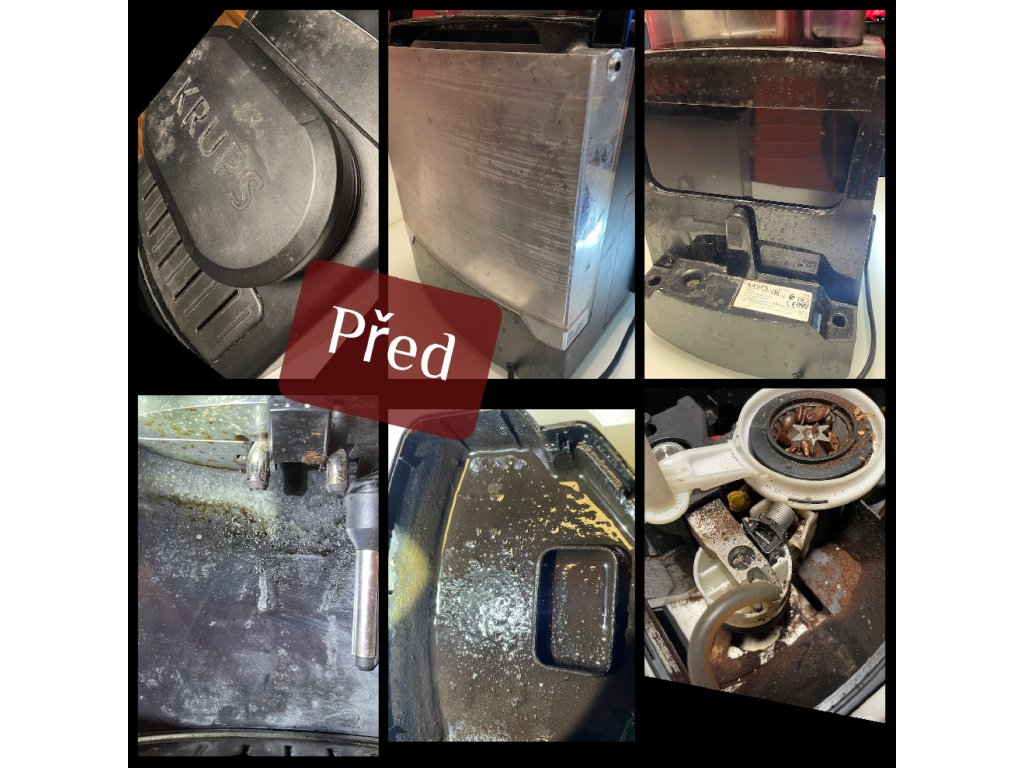 Čištění spařovací jednotky a posuvu spařovací jednotky + dodání maziva, čištění a seřízení kávového mlýnku, čištění výpusti kávy, čištění silikonových hadic, čištění mléčného okruhu a další..
